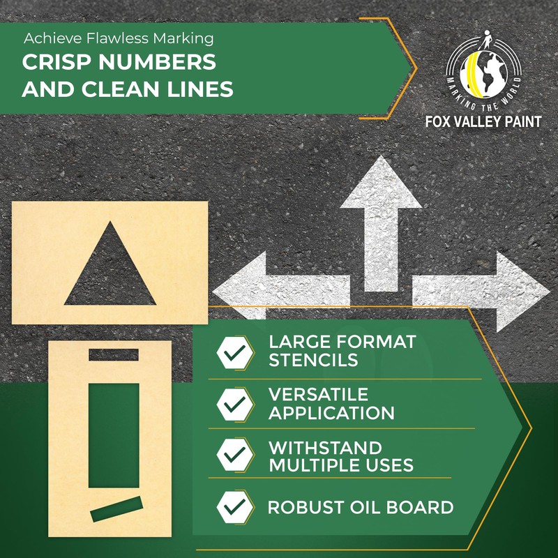Fox Valley Paint 6Pcs Oil Board Stencils Set 47"x17" - Large Stencil, Arrow Stencil for Concrete, Floor, Asphalt, Pavement Stencils, Floor Stencil - Giant Road Marking, Arrow Sign Stencils