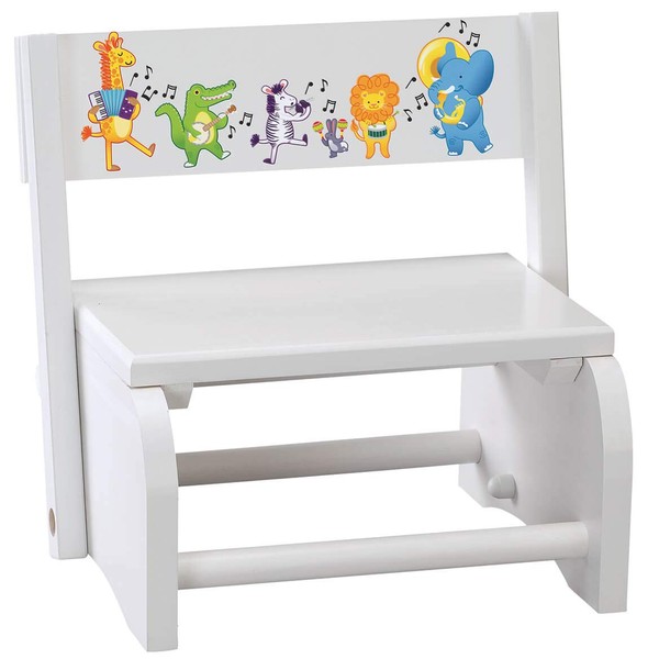 Children's White Musical Animals Step Stool
