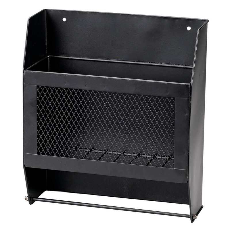 Doubly convenient Metal Double Toilet Paper Holder with Organizer holds 2 rolls of tissue so you never run out. But that's not all -- above this toilet paper roll holder is a handy shelf for reading materials so you never get bored. Metal and wire mesh bathroom organizer design complements any bath decor from classic to contemporary and is easy to clean. Hardware is included to make hanging this toilet roll storage easy. 10" wide x 4" deep x 11 1/4" high toilet tissue holder.
