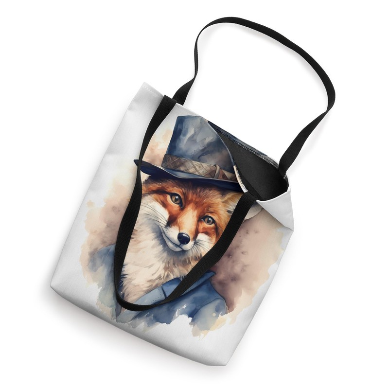 Fox With A Detective Hat. Fox Wearing Detective Hat, Animal Tote Bag