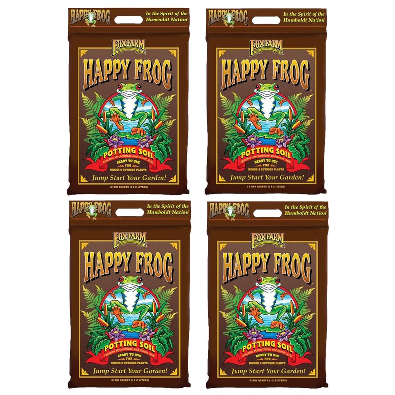 FoxFarm Happy Frog Potting Soil, 12qt – for Indoor/Outdoor Container Plants, Improves Root Efficiency, pH Adjusted for Optimal Nutrient Uptake – Contains Microbes and Humic Acids (Pack of 4)