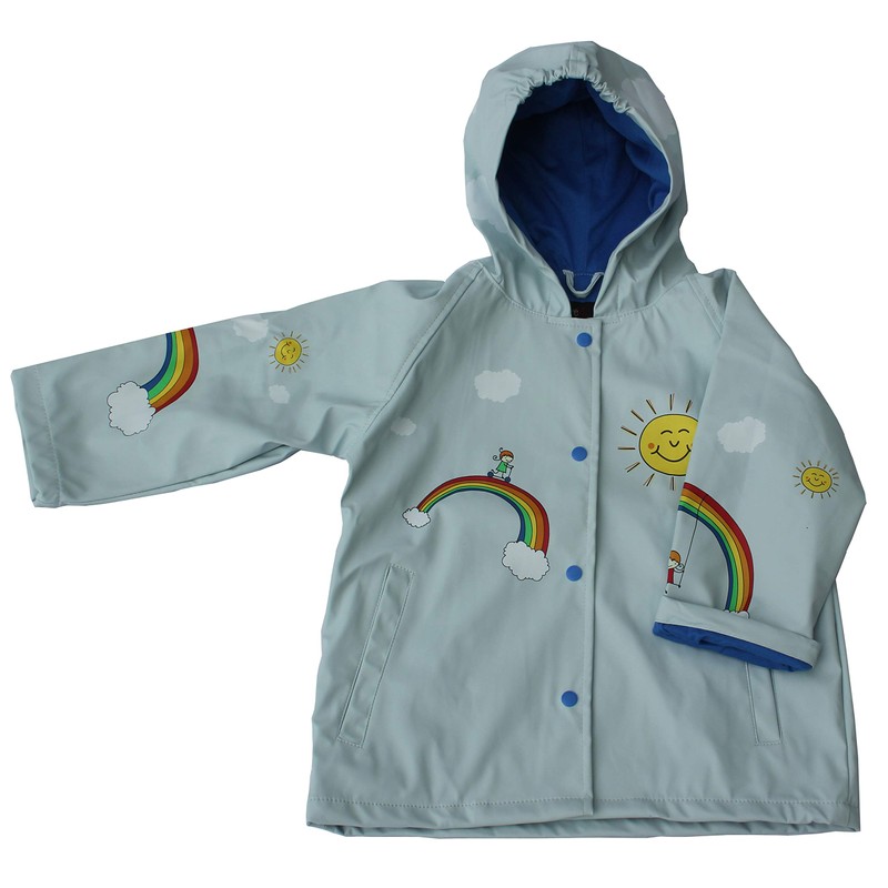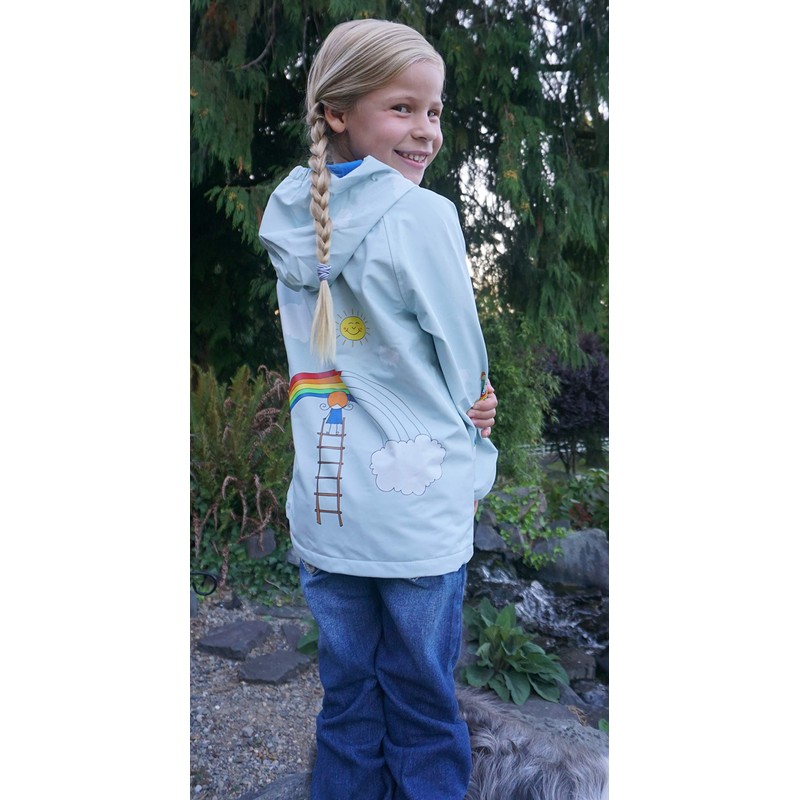 Foxfire for Kids Light Blue Rainbow Art Raincoat size 5