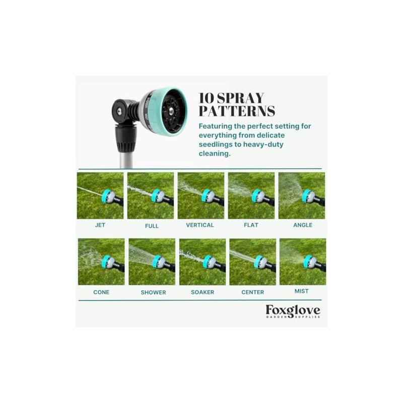 Foxglove 10-in-1 Garden Hose Sprayer with Adjustable Nozzle and Flow Control ...