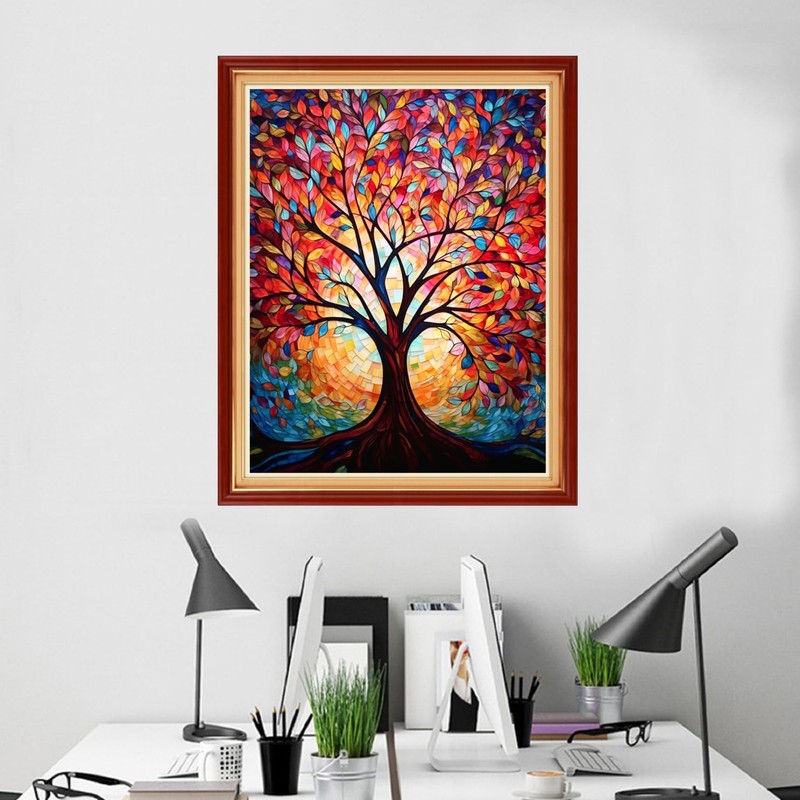Foxhool Beginners Cross Stitch Kits Stamped Full Range of Embroidery Kits for Adults DIY Cross Stitches kit Embroidery Patterns for Needlepoint kit-Noctilucent Tree 16x20 inch