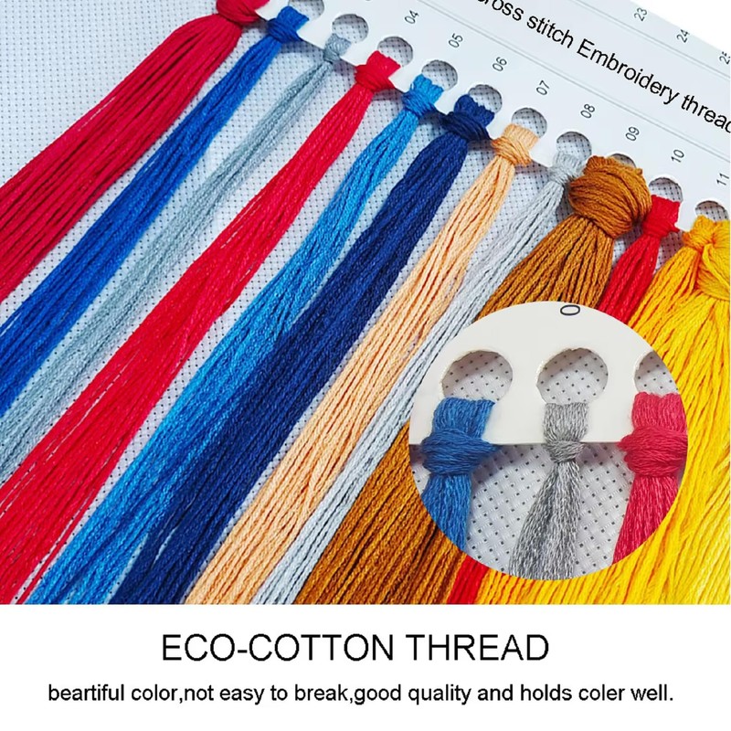 - 【 Three wires should be used 】 For 11CT type, please use three strands of wire and two strands of wire for the back seam. A wire consists of 6 strands, so you need to divide the 6 strands into two 3 strands before starting work.