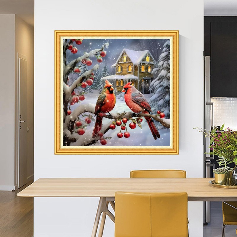 Foxhool Stamped Cross Stitch Kits,11CT Printed Cross Stitch Pattern Full Embroidery Kits for Beginner Needlepoint Kits-Little Bird Snow Scene 18x18 inch