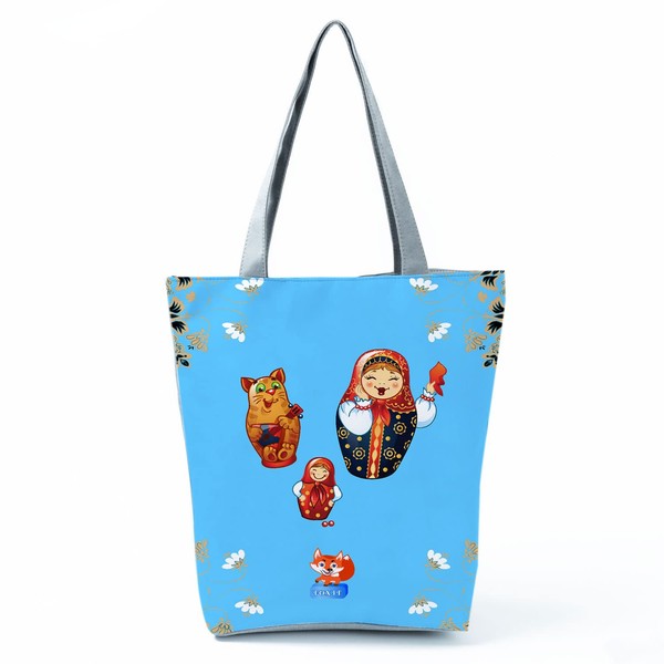 FOXIT Russian purse handbag with dancing matryoshka design and cosmetic bag