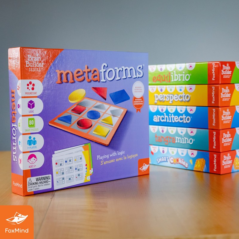 Meta-Forms received the Prime Picks New Products Award from Dr. Toy in USA year 2009, the Seal of Excellence from Creative Child Magazine in USA year 2010, the Spiele Gut award in Germany year 2008 and the Triple Star Award from the Canadian Toy Testing Council - CTTC in Canada year 2004. About the Brain Builder Series - A FoxMind staple for over 10 years, the Brain Builder Series consists of 6 games - Architecto, Equilibrio, Tangramino, Perspecto-Cliko, Meta-Forms and Smart Cookies which are sold in over 15 countries. The series has won numerous awards and is a favorite of children, parents, and teachers all over the world.