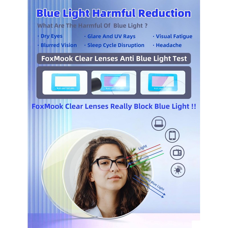 - 1. PROTECT YOUR EYES - Our blue light glasses feature a quality anti-blue light lens that filters out harmful UV rays and reduces digital eye strain for a comfortable reading experience.