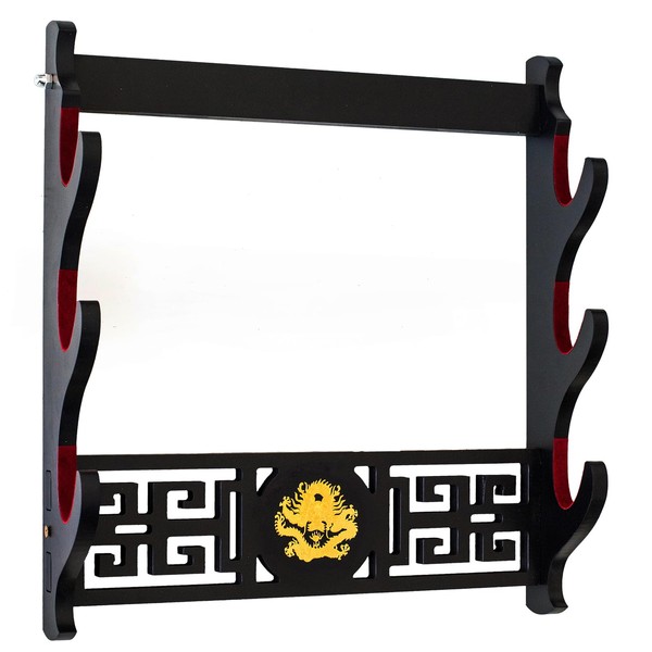 FOXSMZZ Katana Sword Holder Wall Mount Samurai Sword Frame Display Frame Red Velvet China Dragon Style (3-Layer)