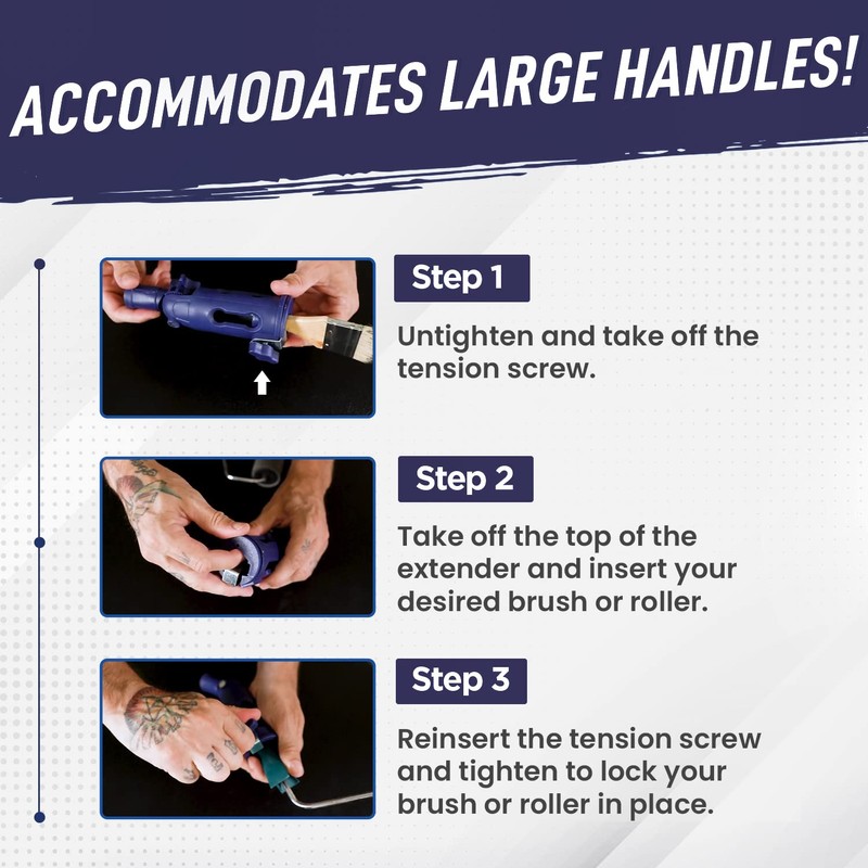 - Fits Most Brushes - Our paint brush extension tool is designed to accommodate brushes measuring 1" to 3". You may also use this detachable tool extender attachment with your paint roller or scraper.