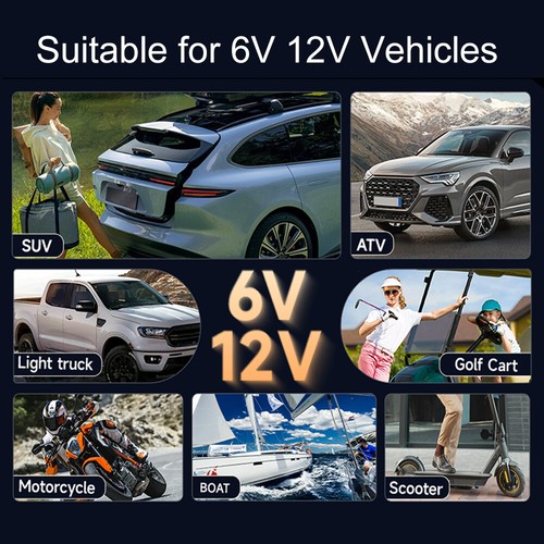 1. Multiple applications: Work for 6V and 12V vehicles including SUVs, ATVs, electric mowers, tractors, boats, motorcycles, and light trucks.