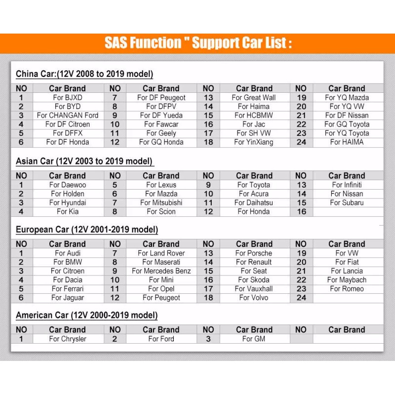 ABS&SRS Support Car List
