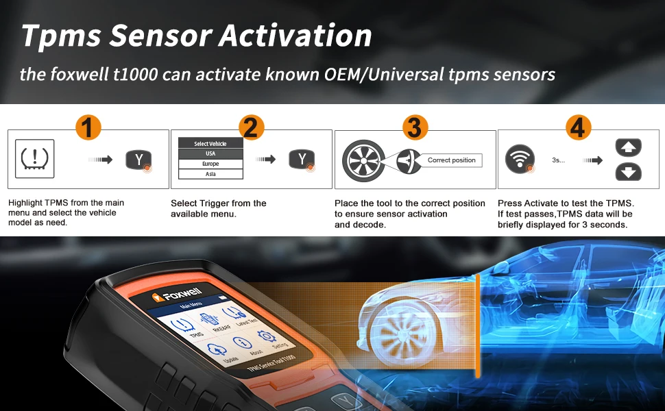 FOXWELL T1000 Activate Programming Diagnostic Tool TPMS Programmer Tires Sensors