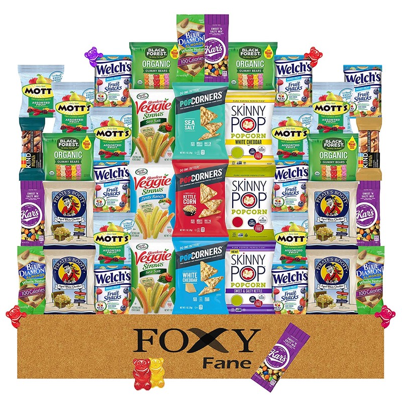 - Foxy Fane 40ct Premium Gluten-Free Healthy Snack Box is an Ultimate Gift Care Package with a wide assortment of Delicious Snacks for all Occasions. Our package contains 40 snacks from only the very best brands that you know & trust. Carefully crafted with a lot of thought and love providing you delicious snacks at an affordable price that both kids and adults would enjoy and get excited over.