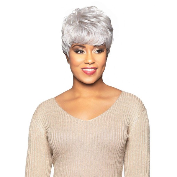 - Celia Wig Color Silver - Foxy Silver Wigs Short Pixie Wavy Boy Cut Synthetic Feathered Bangs African American Womens Machine Wefted Lightweight Average Cap