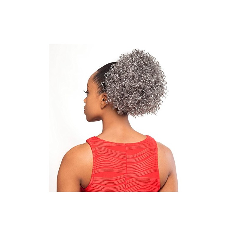 - DS005 Ponytail Color 2 - Foxy Silver Wigs Drawstring Curly Hairpiece Dome Short Synthetic African American Womens