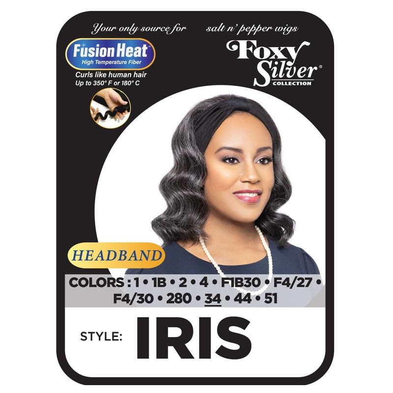 - Foxy Silver Wigs Iris Headband Wig Color 34 - 12" Long Wavy Head Band Shoulder Length Fusion Heat Friendly Synthetic Fiber Womens Lightweight