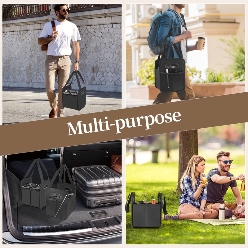 - Multi-functional Drink Carriers This reusable drink carrier replaces disposable cardboard or plastic drink tray. It can hold various cup types and is convenient for transporting coffee, drinks, beer, soda, red wine, juice, milk tea, food, etc. It is very suitable for food delivery, takeout, offices, family gatherings, wine dinners, picnics, camping, swimming pools, or beach parties.
