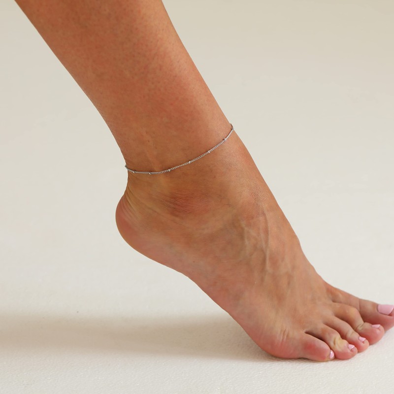 - Satellite Chain Design: This dainty silver satellite chain anklet is a delicate summer accessory for your ankle. It is great for everyday wear. You can wear it alone or stacked with other ankle bracelets