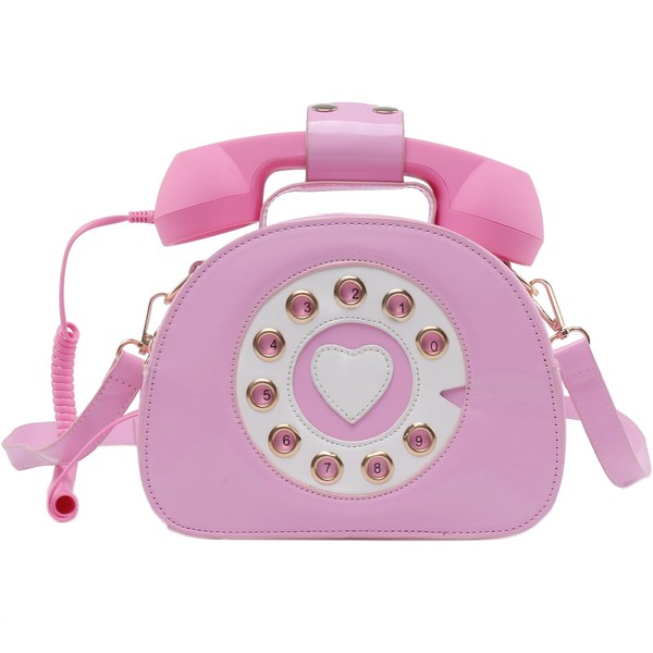 Fozehlad Novelty Telephone Shaped Shoulder Bag Funny Retro Phone Crossbody Bag Totes Chain Purse, Pink, One Size