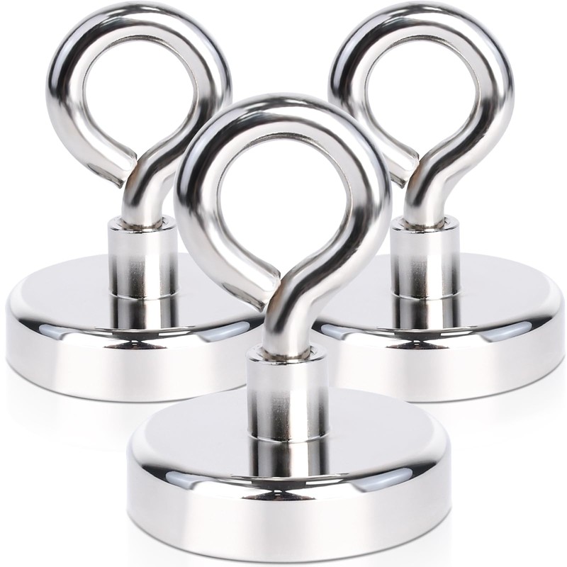 FPMYB Pack of 3 Magnetic Hooks Extra Strong Magnetic Hooks 48 mm Neodymium Magnetic Hooks 80 kg, Magnetic Hooks Eyelet Magnet with Hooks for Cruise Grill BBQ Kitchen Refrigerators Gadgets Iron Doors Office