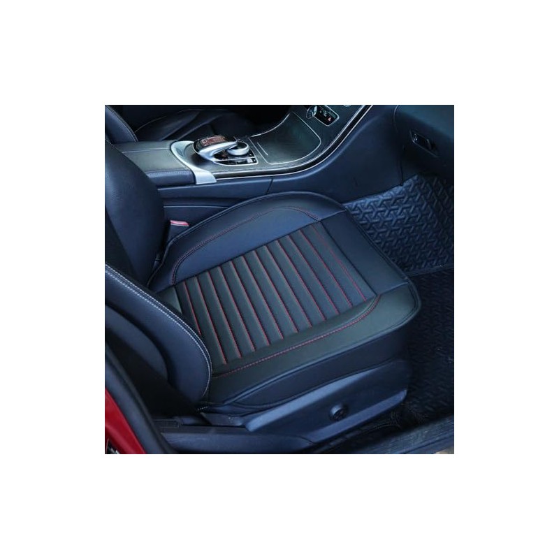 FQFZYMX 1 Pack Leather Front Car Seat Cover Bottom Car Seat,Anti-Slip and Full Wrap Driver Car Seat Protectors,Bottom Auto Seat Cushion Pad Mat for Most Vehicles(Just one/Black&Red1)