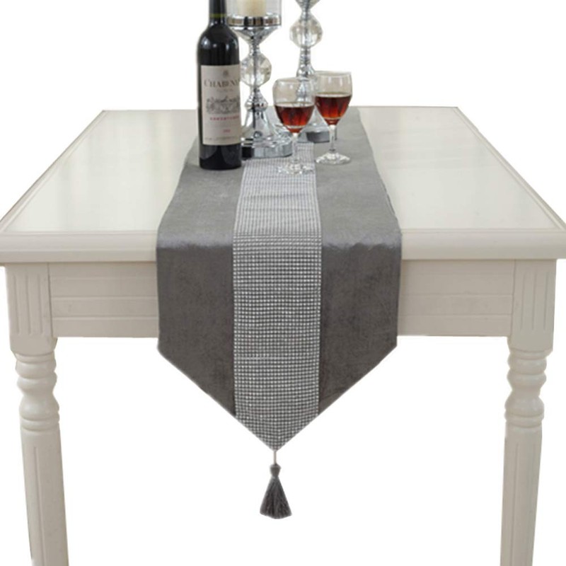 FQTANJU 13inch x 72inch Table Runner with Sequined Rhinestones and Tassels (Grey)