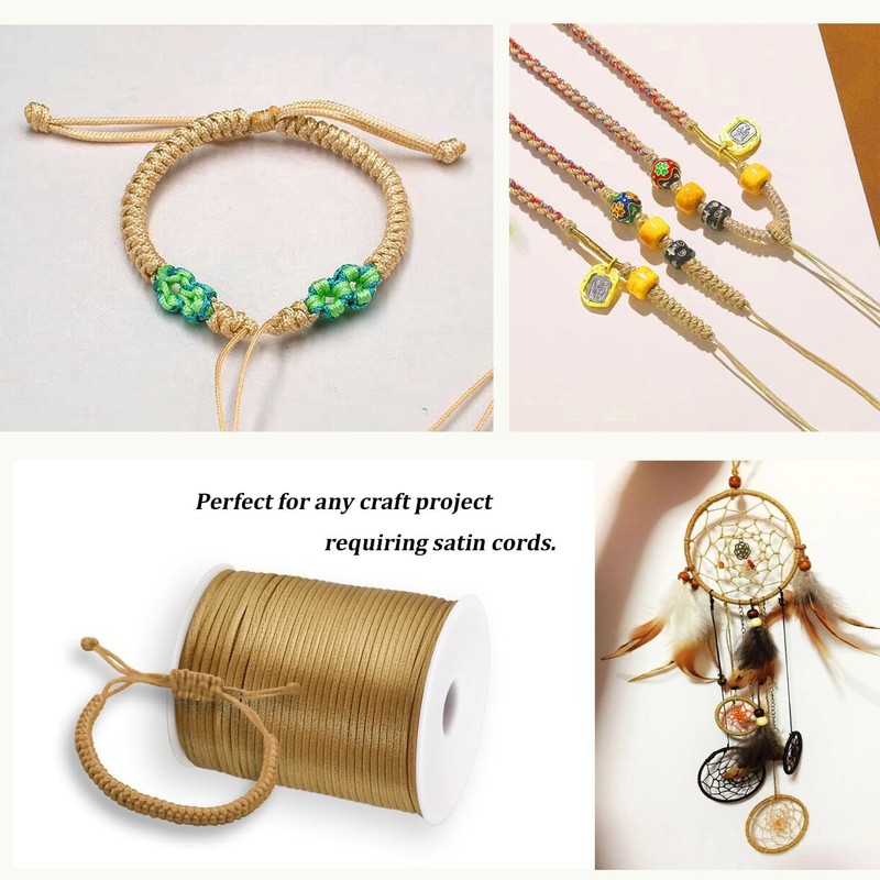 • 【MATERIAL】Satin nylon cord made from nylon with a satin sheen, the satin cord is silky soft, smooth and flexible to work with. Great for making macrame bracelets, necklaces and jewelry.