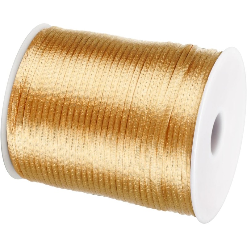 FQTANJU 2mm Nylon Satin Cord, 100 Yards Nylon Cord Satin String for Bracelet Jewelry Making Silky Rattail Macrame Trim Cord Necklace Bulk Beading Thread Kumihimo Chinese Knot Craft (Khaki)
