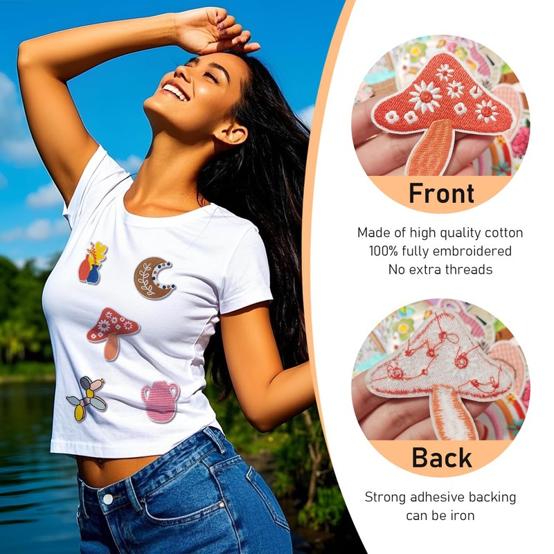 - WIDE APPLICATION: Suitable for all kinds of fabrics, such as denim, cotton, polyester, nylon, etc., it can repair the broken parts of clothing or as a fashionable embellishment. Whether it's for daily repair, travel apparel update, or personalized decoration for DIY enthusiasts, it can meet the demand