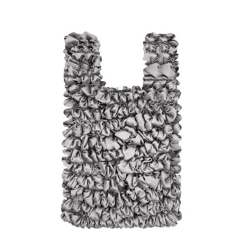FRACARKOS Eco Bag, Large Capacity, Squeegee Stretchable, Satin, Squeezing, Foldable, No Need for Shopping Bag, Elastic, Silver