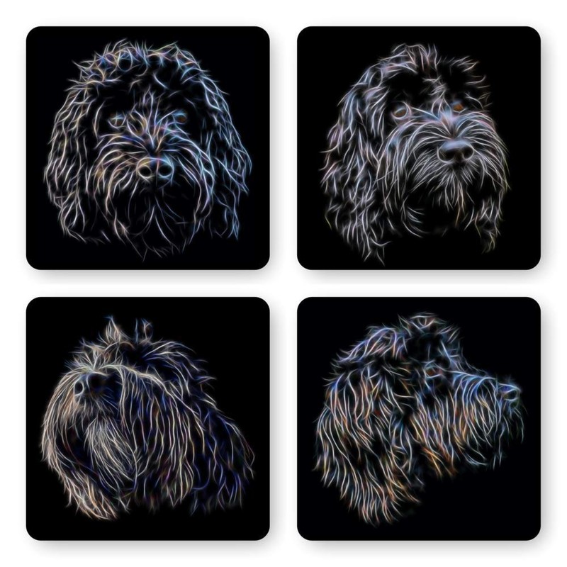 Fractal Artworks Cockapoo Set of 4 Coasters with Fractal Art Design. Black Cockapoo