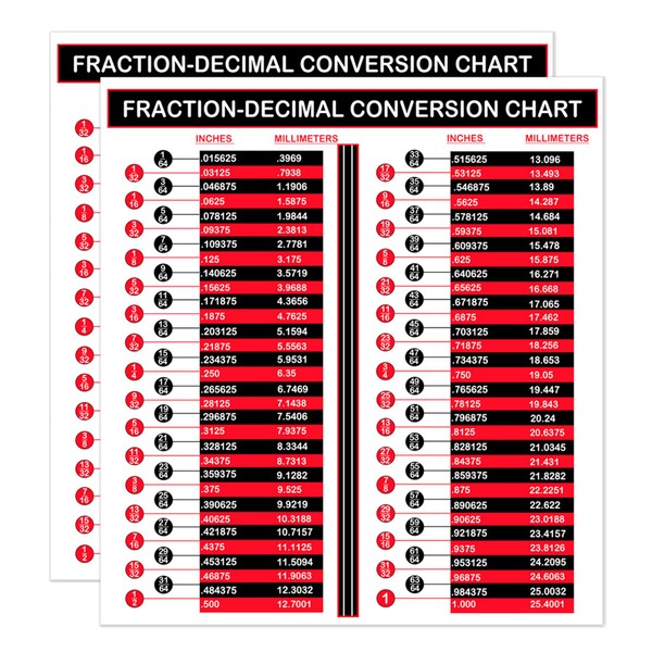 - The Fraction Digital Conversion Chart Sticker features a waterproof coating for easy cleaning. Put your chart in any workspace without worrying about it being destroyed. Paste on the toolbox or workspace for your convenience.