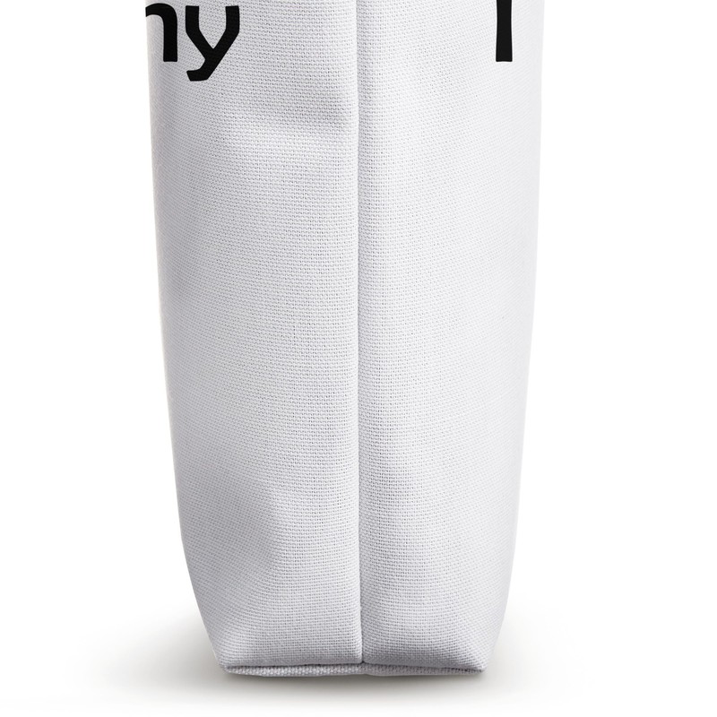 - 16” x 16” bag with two 14” long and 1” wide black cotton webbing strap handles.