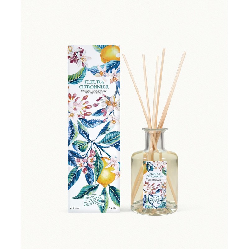 Fragonard Fleur de Citronnier (Lemon Blossom) Reed Diffuser Room Fragrance Citrusy Notes Glass Bottle 200ml