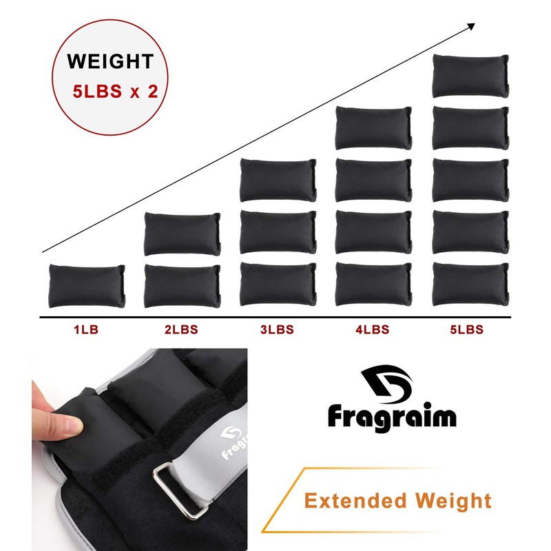 Fragraim Adjustable Ankle Weights 1-10 LBS Pair with Removable Weight for Jogging, Gymnastics, Aerobics, Physical Therapy, Resistance Training|Each 1-5 LBS, Total 10LBS, Grey