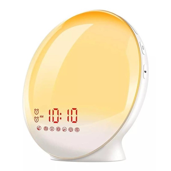 Este reloj cuenta múltiples funciones de radio FM, despertador, luz nocturna, luz de color y simulación de amanecer/atardecer, es realmente una elección perfecta si necesitas un reloj o una lámpara de noche.