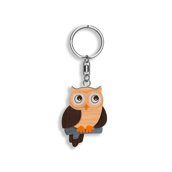 Framan Wooden Owl Keyring in Various Models, Craftsmanship, Sustainable Product, Colourful