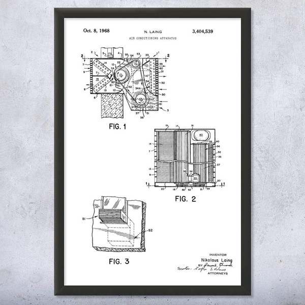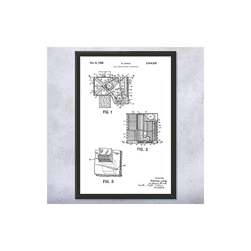 - Framed 8" x 10" poster print featuring a Air Conditioner patent illustration on a Black & White style background. Designed by Patent Earth, this wall art is made to order and customized with your choice of size and background!