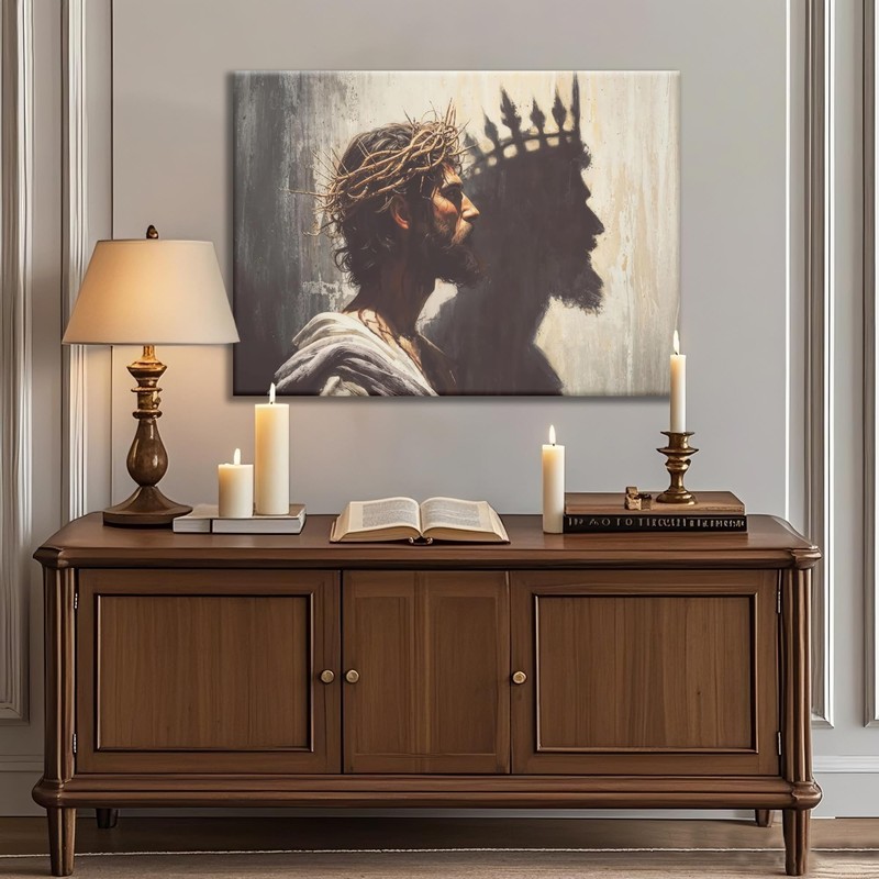 Framed Jesus is the King Christian Wall Art, Jesus and Crown Canvas Wall Decor Christ Biblical Pictures Painting Prints Religious Room Decor for Church Prayer Room Schools Hospitals 24" x 16"