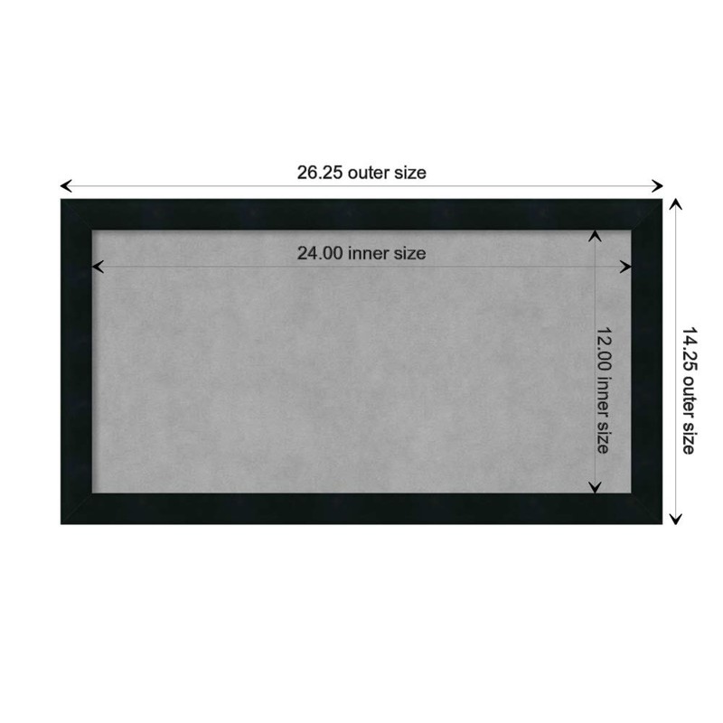 PRODUCT: Magnetic Board Medium, Mezzanotte Black; FRAME: Mezzanotte Black 1 1/4" Wood; FRAME STYLE: Modern; FRAME FINISH: Matte Finish; FRAME COLOR: Black; OUTER SIZE: 26.25 x 14.25 inches. The Mezzanotte Black frame features a black frame with flat surface and a smooth, matte finish. A beautifully framed magnetic board becomes a decoration for your wall as well to free up desk or counter space. Whether it's a board of to-dos, coupons, and calendars, or a showcase of kids’ art, Amanti Art magnetic boards make organization easy and beautiful. Perfect for home use in entryways, kitchens, mudrooms or laundry rooms and durable enough to use in office or corporate environments too. Amanti Art is headquartered in Madison, WI and provides high quality, handmade framed art, mirrors and organization boards for your home improvement projects. Our home decor products are made using traditional custom framing techniques that give you the kind of quality you'd expect from your local frame shop. Because of our focus on workmanship, our products are used by architects, developers, interior designers and homeowners alike to create beautiful functional living spaces.