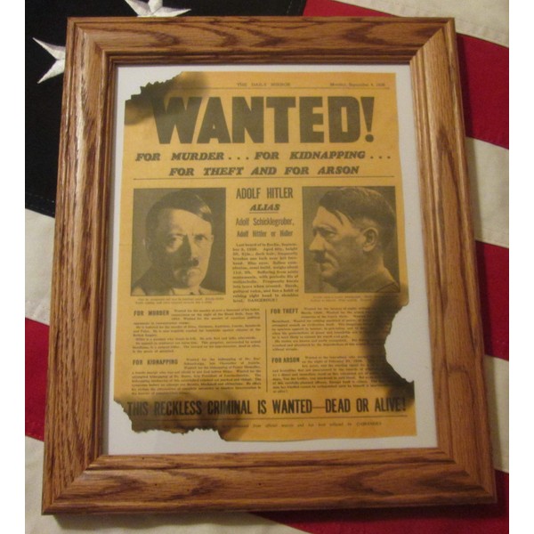 - Framed World War Two, WW2 Newspaper. Nazi ADOLF HITLER Wanted Poster, 1939