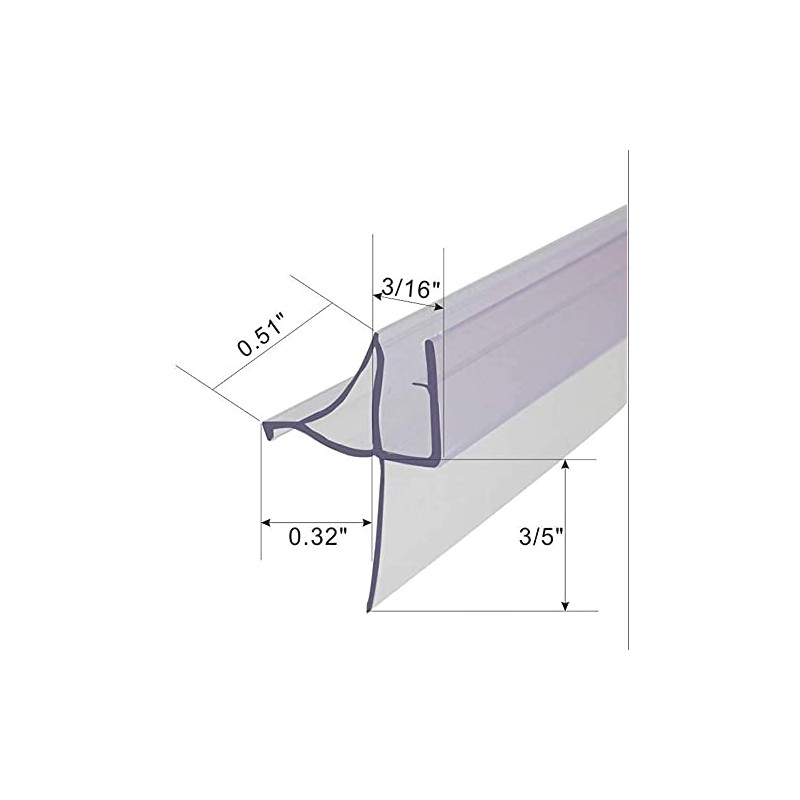 Frameless Shower Door Bottom Seal Shower Sweep with Drip Rail for 3/16-Inch Glass,36-Inch Long, Vinyl, Clear