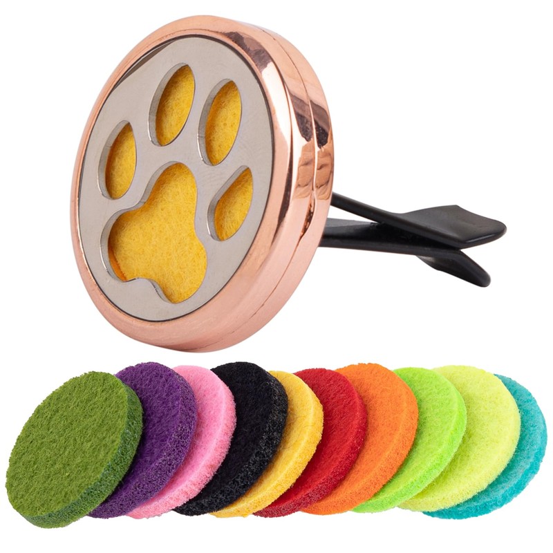 Framendino, 1 Pack Dog Paw Print Essential Car Oil Diffuser with 10 Felt Refill Pads Aromatherapy Car AIR Freshener Vent Clip Lockets for Men Women Gifts