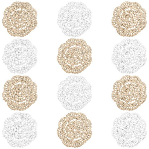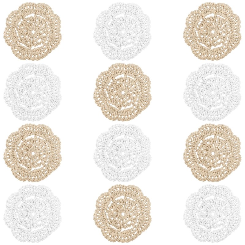 Framendino, 12 Pack 4 Inch Crochet Doilies Round Cotton Handmade Cloth Floral Coasters