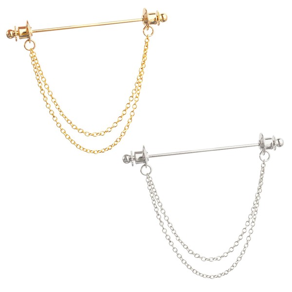 Framendino, 2 Pack Chain Lapel Pin Collar Bar Tassel Brooch for Men Wedding Business, 2 Pack, Metal, no gemstone
