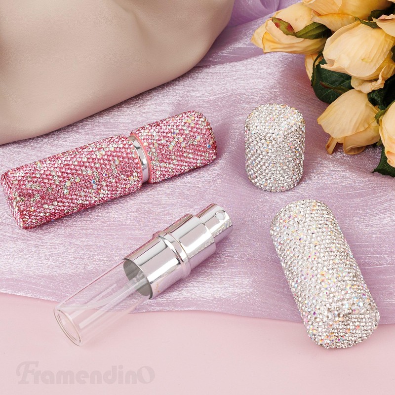 Framendino, 2 Pack Metal Bling Empty Portable Spray Bottle 10ml Transfer Refillable for Travel