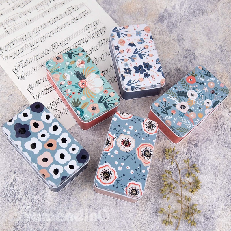 Framendino, 5 Pack Mini Metal Tinplate Boxes Empty Trinket Jewelry Coin Flower Rectangular Tin for Bead Storage Case Containers (Floral)