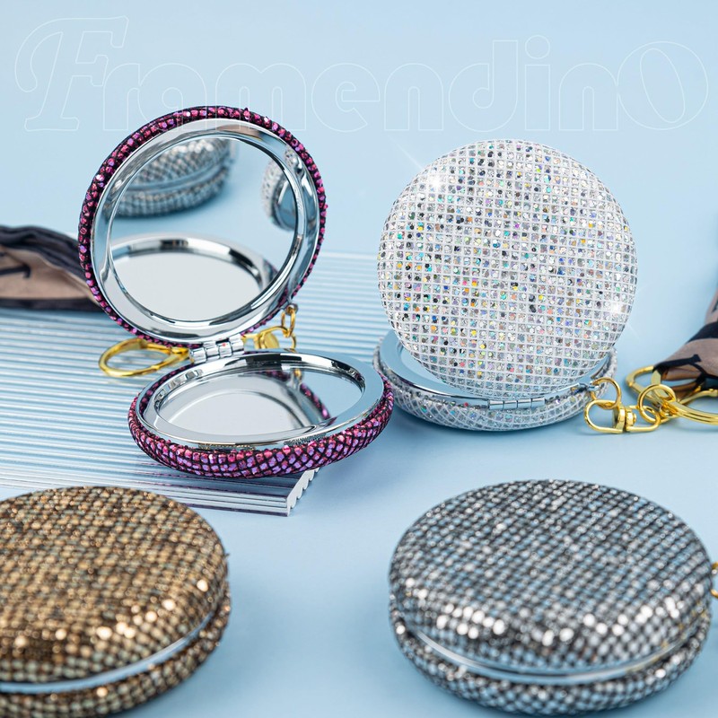 Framendino, 5 Pack Sequin Glitter Pocket Folding Travel Mirors Compact Mirror Round Shaped for Women Makeup
